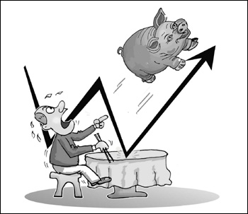 繼2004年、2008年、2011年三輪大幅波動后,豬肉價格的“寒熱病”近期可能會再度發(fā)作。有數(shù)據(jù)顯示,24日全國生豬均價已漲破2011年6月的歷史高點。國家發(fā)改委近日發(fā)出黃色預(yù)警,截至3月9日,豬糧比價為9.13﹕1,處于較高水平,可能會引起養(yǎng)殖戶過度補(bǔ)欄,導(dǎo)致生豬產(chǎn)能過度擴(kuò)張,使生豬價格很快進(jìn)入下跌通道。業(yè)內(nèi)擔(dān)憂,生豬行業(yè)恐怕又將重回“母豬補(bǔ)欄補(bǔ)到過剩,豬價下跌跌至虧損”的老路。
