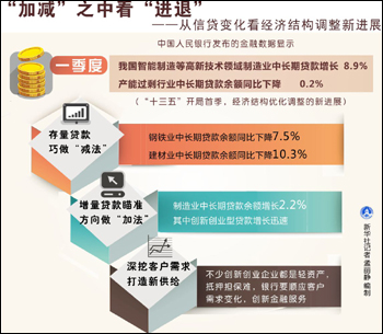 信貸投放領(lǐng)域的變化進(jìn)一步顯現(xiàn)“供給側(cè)改革”的內(nèi)涵。今年一季度末,產(chǎn)能過(guò)剩行業(yè)中長(zhǎng)期貸款余額同比下降0.2%,首次出現(xiàn)負(fù)增長(zhǎng),其中,鋼鐵業(yè)中長(zhǎng)期貸款余額同比下降7.5%,建材業(yè)中長(zhǎng)期貸款余額同比下降10.3%。與此同時(shí),經(jīng)濟(jì)重點(diǎn)領(lǐng)域和薄弱環(huán)節(jié)的信貸投放增長(zhǎng)較快。如,小微企業(yè)貸款增速為14.5%,比大型企業(yè)和中型企業(yè)貸款增速分別高2個(gè)和5個(gè)百分點(diǎn),高于全部企業(yè)貸款增速2.4個(gè)百分點(diǎn)。