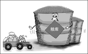河南省部分地區(qū)也遭遇豐收后的“煩惱”。在地處豫南的固始縣馬堽集鄉(xiāng),民營倉庫老板胡大民告訴記者,由于信陽市在去年秋糧托市收購時出現(xiàn)農(nóng)民排長隊賣糧現(xiàn)象,為緩解農(nóng)民賣糧難,當(dāng)?shù)卮蠓秶鷨⒂妹駹I庫點進(jìn)行委托收購。在此背景下,自己投資建的2萬噸倉庫(以小麥來計算)也成為委托庫點,投入使用后很快也收滿了?!俺嗽诮◣禳c外,老倉新倉、國倉民倉都滿了,如果不采取措施,來年托市收購肯定會無倉可收,賣糧難或?qū)⒅噩F(xiàn)?!焙竺裾f。
