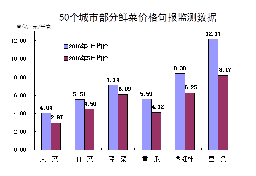 從環(huán)比看,CPI環(huán)比下降0.5%,主要是受鮮菜價(jià)格下降較多的影響。年初寒潮天氣襲擊我國(guó)大部分地區(qū),影響了鮮菜的生產(chǎn)和運(yùn)輸,鮮菜價(jià)格高位運(yùn)行,較往年同期上漲較多。隨著應(yīng)季鮮菜上市,市場(chǎng)供應(yīng)逐步增加,鮮菜價(jià)格趨于正常。5月份鮮菜價(jià)格環(huán)比下降21.5%,影響CPI環(huán)比下降約0.64個(gè)百分點(diǎn),超過(guò)CPI環(huán)比總降幅。從50個(gè)城市主要食品價(jià)格旬報(bào)監(jiān)測(cè)看,蔬菜價(jià)格回落幅度較大,部分鮮菜價(jià)格下降幅度甚至超過(guò)三成。5月份豬肉價(jià)格環(huán)比繼續(xù)上漲,漲幅為2.3%,影響CPI環(huán)比上漲約0.07個(gè)百分點(diǎn)。國(guó)內(nèi)成品油價(jià)格兩次提價(jià),汽油、柴油價(jià)格環(huán)比分別上漲3.7%和3.8%,合計(jì)影響CPI環(huán)比上漲約0.06個(gè)百分點(diǎn)。