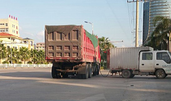 ???? 廂式改裝車正在給貨車加油。資料照片 |