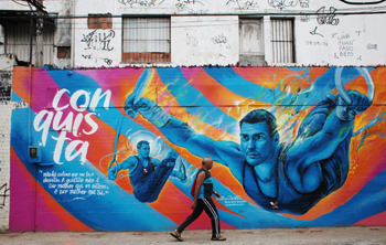 6月24日,里約熱內(nèi)盧街上的奧運(yùn)會(huì)宣傳畫。2016年8月5日至21日,第31屆夏季奧運(yùn)會(huì)將在巴西的里約熱內(nèi)盧舉行。 新華社發(fā)? |