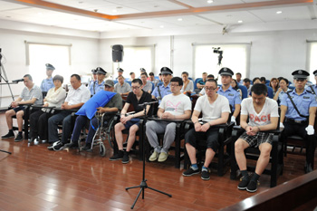 7月6日,北京最大涉案金額非法集資案一審開庭,8名被告人在北京市朝陽區(qū)人民法院參加庭審。 新華社發(fā)(曹璐 攝)? |