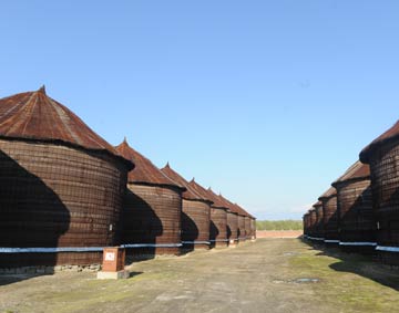 ?圖為黑龍江省虎林市新虎林糧庫有限公司裝滿糧食的席茓囤一字排開。記者 王松/攝 |