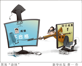 專門(mén)尋找未通過(guò)會(huì)計(jì)從業(yè)資格考試的考生,承諾付款即可修改成績(jī),收款后聯(lián)系黑客,入侵網(wǎng)站改成績(jī)……近日,內(nèi)蒙古呼和浩特市首例破壞計(jì)算機(jī)信息系統(tǒng)案在賽罕區(qū)人民法院宣判,9名被告人被分別判處五年至一年零三個(gè)月不等的有期徒刑。