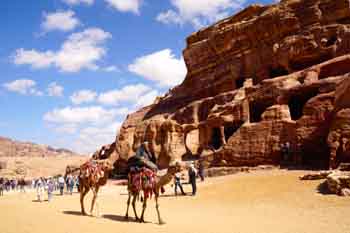 相傳,那隱藏的佩特拉古城是公元前4世紀(jì)到公元前2世紀(jì)納巴泰王國居住的城市,納巴泰人是阿拉伯游牧民族,約在公元前6世紀(jì)從阿拉伯半島北移進(jìn)入該地區(qū),在此依山修建了這一片謎一樣的古城。這里是阿拉伯和地中海區(qū)域一個(gè)重要的交叉地區(qū),曾經(jīng)一度繁華。