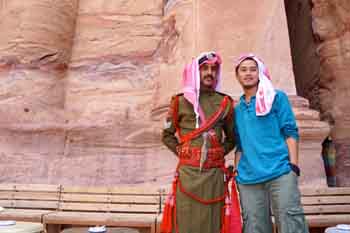 我在路邊小攤上買下了一塊具有阿拉伯風(fēng)格的頭巾,也被當(dāng)?shù)厝死嬌狭藷熝b,我想,就讓我做一天約旦人,去融入這玫瑰之城,去體味這千年的時(shí)光足印。