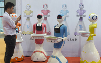中國(廣州)智能裝備暨機器人博覽會9月22日至25日在廣州舉行。在這次展會上,各種各樣的服務型機器人引來不少參觀者駐足體驗。這些機器人盡管外貌千差萬別,但都具備智能全自主行為能力,可進行人臉識別、智能家居控制和遠程視頻監(jiān)控等。