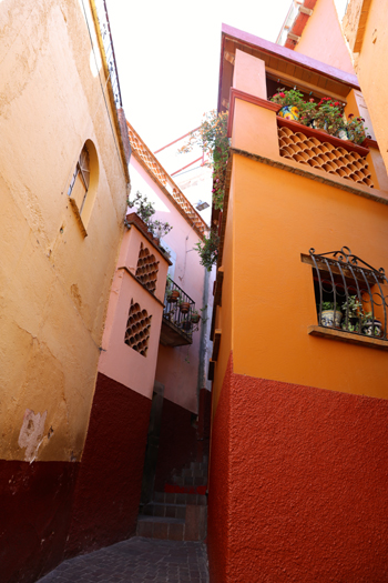 在瓜納華托,有著太多大大小小的巷道,它們用各自的色彩連接起人們的生活。其中的一條巷道,吸引著無(wú)數(shù)情侶前來(lái),這條小巷有著一個(gè)浪漫的名字,叫作“接吻小巷”。之所以這樣叫,是因?yàn)橄锏婪浅*M窄,幾乎只能容得下一個(gè)人通過(guò),若兩個(gè)人在一起,那就會(huì)面對(duì)著面、嘴碰上嘴,這就給通過(guò)的情侶留下了調(diào)情的氛圍,一起在這樣童話般的巷道里玩味一把墨西哥的情調(diào)。