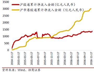 深港通首日波瀾不驚,成交量整體較為有限。業(yè)內(nèi)較為關(guān)心的,則是開通之后南北資金的流向問(wèn)題。公開資料顯示,自2014年11月17日滬港通開通之后,滬股通資金流入情況經(jīng)過(guò)了三個(gè)階段。開通之初資金明顯流入,2015年7月3日達(dá)到最高點(diǎn),隨后資金明顯流出,2016年2月25日達(dá)到最低點(diǎn);此后資金又逐漸緩慢回流,目前累計(jì)資金凈流入接近1400億元人民幣,占滬股通總額度的比例不足一半;滬市港股通則一直處于流入的態(tài)勢(shì),至2016年11月中期達(dá)3000億元人民幣左右。