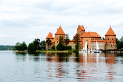 每到一個(gè)地方,我必先買些當(dāng)?shù)氐拿餍牌?。一?lái)寄給牽掛的人很浪漫,二來(lái)明信片上的風(fēng)光一般都是必去之處。特拉凱便是這樣。這個(gè)位于維爾紐斯城外20多公里處的一個(gè)精巧小鎮(zhèn),以加爾瓦湖心島上的特拉凱城堡聞名。建造于1409年的特拉凱城堡,以粉紅色磚砌成,佇立于湖中,遠(yuǎn)觀真恍如進(jìn)入童話,又不禁讓人想起那句“宛在水中央”來(lái)。