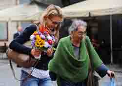 陽(yáng)臺(tái)上的鮮花是歐洲城市的生命,沒(méi)想到走進(jìn)維爾紐斯的老城區(qū),第一個(gè)迎接我卻是兩朵假花——窄巷口,紅瓦白墻的房檐下,兩張絨布太陽(yáng)花上的笑臉一樣那么燦爛。
