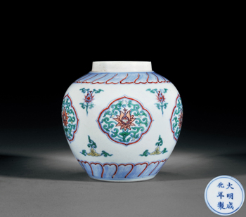 ??? 清雍正 仿成化斗彩開(kāi)光折枝蓮紋罐“大明成化年制”款 |