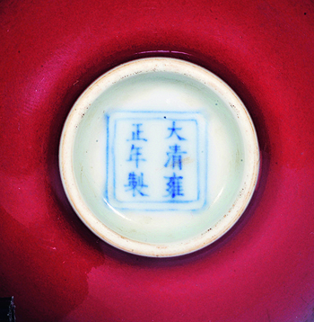 ??? 清雍正 紅釉杯 款“大清雍正年制” |