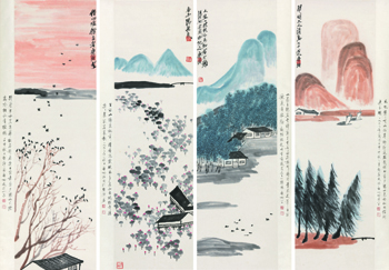 在“集瑞——中國書畫專場”榜單前5的拍品中,齊白石《山水四屏》1600萬港幣起拍,經(jīng)多番激烈競價后,最終以2183萬港幣成交。齊白石作品中,山水畫最為稀見,備受市場歡迎,此幅齊白石《山水四屏》早于1999年見拍于香港佳士得春拍,畫上附有啟功題裱邊。
