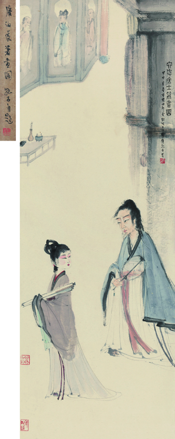 傅抱石的《六如居士著畫圖》本季以1321.6萬港幣成交。傅抱石擅長美術(shù)史論研究,熟悉文學故實,習慣以歷史典故、文學名篇為題抒發(fā)情感,作品名中的“六如居士”是唐伯虎的號,畫中所繪男子便為唐伯虎。