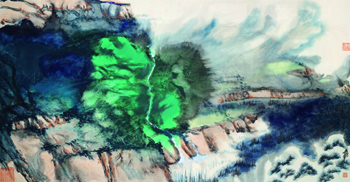 張大千另外一幅《晴山翠靄圖》也取得佳績,以1750萬港幣落槌,最終以2065萬港幣成交。該作品為張大千在美期間的英文翻譯及秘書林瑞藹女士來臺探訪張大千先生時所獲饋贈,1500萬港幣起拍。