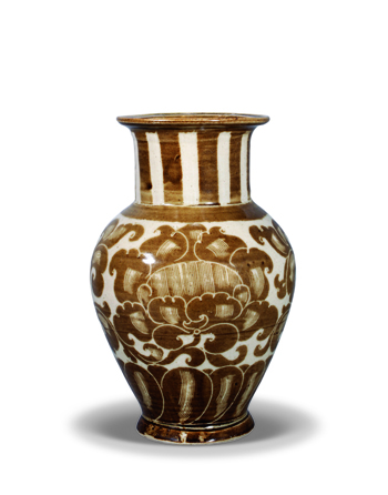 宋“定”刻花梅瓶則以590萬港幣成交。定窯為趙宋名物,千百年來備受文人士大夫推崇,享譽盛名。此瓶造型別致,未見相同樣式。裝飾風格獨特,通體剔花,線條活潑流暢。