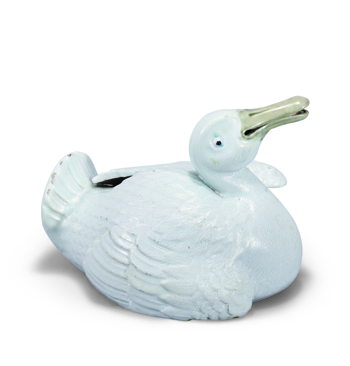 此外,唐英制像生瓷鴨在拍場最終以377.6萬港幣成交。唐英在職時,仿生瓷器達到陶瓷史上最高水平。瓷鴨臥式,造型寫實,全身絨毛均細致刻畫,工藝極為細膩,體現(xiàn)出唐英制器的超高工藝水平和藝術(shù)水平。