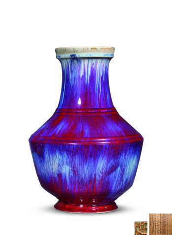 ??? 清雍正 窯變釉盤口弦紋瓶 |
