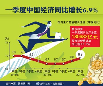 國家統(tǒng)計(jì)局17日公布了最新的國民經(jīng)濟(jì)運(yùn)行數(shù)據(jù)。數(shù)據(jù)顯示,今年一季度,國內(nèi)生產(chǎn)總值(GDP)為180683億元,按可比價(jià)格計(jì)算,同比增長6.9%。從投資、工業(yè)生產(chǎn)、進(jìn)出口等多項(xiàng)數(shù)據(jù)來看,一季度增長超出市場(chǎng)預(yù)期。