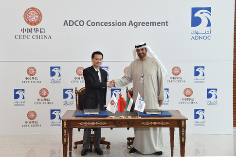 2017年2月20日,中國華信董事會主席葉簡明與ADNOC首席執(zhí)行官、阿布扎比酋長國最高石油委員會成員蘇爾坦?艾哈邁德?賈巴爾共簽協(xié)議,中國華信獲得了阿布扎比最大的已開發(fā)油氣區(qū)塊4%的40年權益