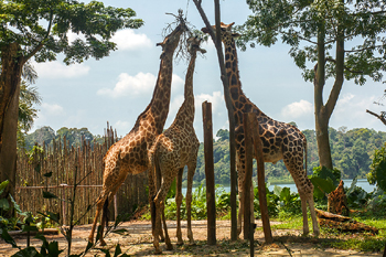夜幕降臨之際,夜間野生動物園開門迎客。1994年開業(yè)的夜間野生動物園毗鄰新加坡動物園 ,是全球首個展示夜間動物的野生動物園。走進“暗無天日”的動物之家,你需要花點時間適應黑暗;這之后,眼前就會出現(xiàn)130多個品種的2500多只動物,其中許多是本地土生土長的動物,例如瀕臨滅絕的亞洲象、馬來貘和馬來虎。這些動物生活在35公頃茂密的熱帶雨林之中。小鹿等友善的動物會在夜間動物園內自由漫步,花豹等較為兇殘的動物只能待在籠子里。想以車代步游園的話,可搭上全長35分鐘、配有現(xiàn)場解說的觀光電車,帶領游覽全球七大洲,從崎嶇不平的喜馬拉雅山脈到赤道非洲的沼澤地,各具特色。動物園內有四條徒步探索小徑,你也可以深入叢林探險,發(fā)現(xiàn)更多電車看不到的動物。