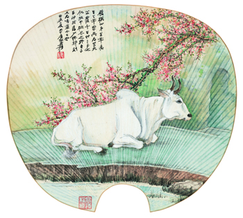 “不負古人告后人——大風堂師友”專場則以2762.53萬元總成交額斬獲白手套,拍賣現(xiàn)場氣氛熱烈、競價激烈,多數(shù)拍品均以高出估價數(shù)倍成交,張大千的《天竺覆斗?!芬愿叱龉纼r3倍的667萬元成交,成為本場第一,其《春江歸棹》、《江岸送別圖》分別拍得333.5萬和178.25萬元?!短祗酶捕放!分兴L牛原產(chǎn)于印度,是熱帶地區(qū)之特有牛種。其肩上有一肌肉組織隆起,狀似瘤,故得名;又如量斗倒置蓋背上,遂有“覆斗牛”之稱。印度奉牛為圣物,嚴禁屠宰殺食,故城市鄉(xiāng)鎮(zhèn)街頭皆有瘤牛聞蕩,成為當?shù)靥赜兄袼鬃诮田L情。張大千1950年到印度考察當?shù)胤鸾趟囆g,親身體驗此異域風情時,遂引此入畫。