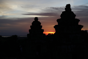 很多游客的吳哥之行從吳哥寺觀日出開始。天才蒙蒙亮,很多來看日出的游客已經(jīng)守在吳哥寺西面南北兩個“蓮花池”旁,其中不乏裝備齊全的專業(yè)攝影師。吳哥寺日出的魅力在于它的美變幻莫測,云層的變化令日出色彩絢爛,吳哥寺五座標志性寶塔的剪影和朝霞映在蓮花池的水面,讓人分不清幻影還是真實,這種穿越時空的美,攝人心魄。