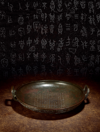 此次的西泠拍品中,分量最重的當(dāng)屬西周重器青銅兮甲盤。經(jīng)王國維考證,兮甲盤的原主人為西周朝太師尹吉甫,他不僅是西周大政治家、大軍事家,還是中國最早的詩歌總集《詩經(jīng)》的采集者和編撰者,被稱為“中華詩祖”。兮甲盤銘文133字,為國內(nèi)拍場(chǎng)銘文字?jǐn)?shù)最多之重器,所記時(shí)間、地點(diǎn)、人物、事件四要素齊備,史料價(jià)值極高,堪與《尚書》媲美。該銘文對(duì)于研究西周官制、戰(zhàn)爭、封賞、稅賦、貿(mào)易管理等均具有重要意義。同時(shí),兮甲盤金文書法也有著獨(dú)特的風(fēng)格。它的遞藏絕無僅有:在宋朝濃厚的金石學(xué)氛圍下,兮甲盤被收入南宋宮廷,南宋末年戰(zhàn)亂流落民間,被元代官吏李順甫發(fā)現(xiàn),后李順甫將盤贈(zèng)予元代大鑒賞家鮮于樞,經(jīng)數(shù)代名賢收藏傳遞,清初被收入清河保陽官府,直到清末輾轉(zhuǎn)至大收藏家、鑒賞家、著名學(xué)者陳介祺之手。隨后,兮甲盤不知下落,從此只能從陳介祺、吳大澂等人遺留的拓片上看到盤的圖案和銘文。它的著錄讓人震撼:自宋代以來,歷代學(xué)者藏家對(duì)它產(chǎn)生了極大的興趣,目前可查著錄至少達(dá)百次以上,如重要著錄有宋代張掄《紹興內(nèi)府古器評(píng)》,元代鮮于樞《困學(xué)齋雜錄》,元代陸友仁《研北雜志》,清代陳介祺《簠齋藏古冊(cè)目并題記》,清代吳大澂《愙齋集古錄》,近代容庚《商周彝器通考》等。