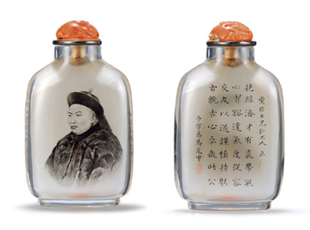 民國(guó) 內(nèi)畫肖像詩(shī)文鼻煙壺 |
