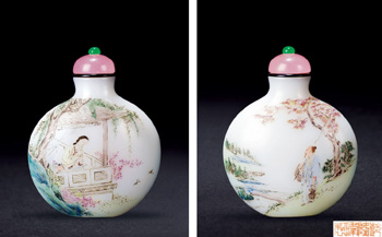 香港曾拍出的清乾隆玻璃畫琺瑯西洋仕女鼻煙壺,刷新了當(dāng)時(shí)中國(guó)鼻煙壺拍賣的世界紀(jì)錄。國(guó)內(nèi)鼻煙壺拍賣的最高價(jià)誕生于中國(guó)嘉德拍賣。2011年,一件清乾隆款御制鼻煙壺拍出了782萬(wàn)人民幣的高價(jià)。此件煙壺采用了銅胎畫琺瑯的工藝,煙壺兩面各繪一歐式仕女,人物線條流暢,顏色柔和絢麗。在香港及歐美國(guó)家的拍賣中,也??吹綗焿厥詹卮蠹业牟仄?,如香港邦瀚斯已連續(xù)推出瑪麗和莊智博夫婦煙壺拍賣專場(chǎng),現(xiàn)在的鼻煙壺世界紀(jì)錄就是在2011年的專場(chǎng)中誕生的;佳士得拍賣也相繼推出了《小有洞天——J&J鼻煙壺珍藏》專場(chǎng)……而國(guó)內(nèi)的此類專場(chǎng)相對(duì)數(shù)量較少,鼻煙壺市場(chǎng)似乎也有內(nèi)冷外熱的現(xiàn)象。事實(shí)上,西方國(guó)家首先刮起了一陣較為系統(tǒng)化的鼻煙壺收藏?zé)帷?968年,美國(guó)中國(guó)鼻煙壺協(xié)會(huì)成立,即今天的國(guó)際中國(guó)鼻煙壺協(xié)會(huì),成立至今已有成員500多人。此后,世界各地也陸續(xù)成立了許多鼻煙壺專業(yè)研究團(tuán)體,如新加坡牛車水鼻煙壺學(xué)會(huì)等。甚至有學(xué)者認(rèn)為,世界上大部分重要的鼻煙壺收藏及研究專著,都在國(guó)外。近年來(lái),隨著藝術(shù)品市場(chǎng)的整體發(fā)展,鼻煙壺也越來(lái)越受到國(guó)內(nèi)廣大藏家的喜愛和追捧,煙壺的最高拍賣紀(jì)錄也在不斷地刷新。但由于這個(gè)市場(chǎng)整體起步相對(duì)較晚,有人認(rèn)為未來(lái)仍能有一定的發(fā)展空間。