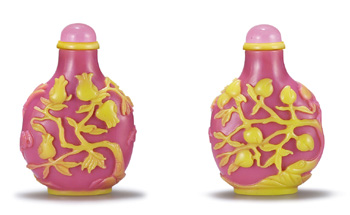 十八世紀(jì) 粉紅料套黃福壽紋鼻煙壺 |