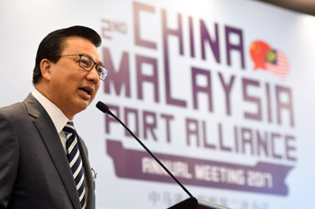 ??? 9月4日,在馬來西亞吉隆坡,馬來西亞交通部長(zhǎng)廖中萊在第二屆中馬港口聯(lián)盟會(huì)議上致辭。第二屆中馬港口聯(lián)盟會(huì)議4日在吉隆坡舉行,會(huì)議同意接納中國(guó)青島港務(wù)局、天津港務(wù)局以及馬來西亞甘馬挽、沙巴和古晉三個(gè)港務(wù)局成為新的聯(lián)盟成員。新華社發(fā)(張紋綜 攝) |