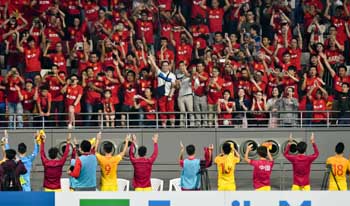 ??? 9月5日,在卡塔爾首都多哈進(jìn)行的2018年世界杯足球賽亞洲區(qū)預(yù)選賽中,中國(guó)隊(duì)以2比1戰(zhàn)勝卡塔爾隊(duì)。圖為中國(guó)隊(duì)球員賽后向球迷致意。新華社發(fā)(尼庫(kù) 攝) |
