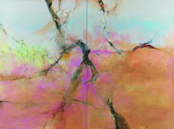 《24.12.2002-雙聯(lián)作》一股柔和而具有律動(dòng)的能量充盈于此巨幅雙聯(lián)畫作,微妙的色彩層次的視覺感非常豐富:上方一抹湖藍(lán)色與下方的梅紅色以及大面積的暖褐色融合為背景色。這與趙無極早期作品著重用筆的力度及油彩的厚重方式不同,此作品不但探索了色彩,光線及用色的巧妙運(yùn)用,更是散發(fā)出輕盈的氣息以及由畫布自內(nèi)向外散發(fā)的柔和光芒。這種對于輕盈、抽象的空間的追尋,契合大膽的色彩運(yùn)用正是趙無極在晚期創(chuàng)作所追尋的和諧點(diǎn)。趙無極的藝術(shù)成就不僅在于他在西方抽象藝術(shù)發(fā)展中開創(chuàng)了其獨(dú)特具有東方美學(xué)的藝術(shù)風(fēng)格,更是他將中國哲學(xué)的深刻洞見與創(chuàng)造性詮釋于藝術(shù)創(chuàng)作之中,這條東西美學(xué)融合的艱難探索之路,不但在世界藝術(shù)史發(fā)展中留下精彩的篇章,亦是藝術(shù)家回歸內(nèi)在本源。佳士得亞洲二十世紀(jì)及當(dāng)代藝術(shù)資深專家莊俊表示:“作為世界藝術(shù)舞臺(tái)上最耀眼的華人藝術(shù)大師之一,趙無極豐富的繪畫語言與筆觸不斷帶給我們驚喜與感動(dòng)。此件由歐洲征集的藝術(shù)家晚期代表作品更為本季秋拍增添更多色彩和分量。與此同時(shí),本專題將呈現(xiàn)數(shù)件趙無極不同時(shí)期油畫和紙上等精甄之作。”