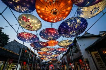 ??? 2017海峽兩岸(昆山)中秋燈會(huì)于9月20日在江蘇省水鄉(xiāng)古鎮(zhèn)周莊揭幕,燈會(huì)通過(guò)“昆山印象”“寶島風(fēng)情”“周莊故事”和“祈福中華”4大主題燈區(qū)、120組燈彩呈現(xiàn)中秋民俗傳統(tǒng)。記者 楊磊 攝 |