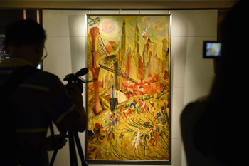 ??? 香港蘇富比21日在港展出旅美華人現(xiàn)代藝術(shù)家朱沅芷的巨幅油畫作品《工業(yè)之輪在紐約》,為本季秋拍現(xiàn)當(dāng)代藝術(shù)領(lǐng)域估值最高的一幅畫,估價(jià)為0.8億至1.2億港元。據(jù)悉,朱沅芷為首位獲邀參展紐約現(xiàn)代美術(shù)館(MoMA)的華人藝術(shù)家。