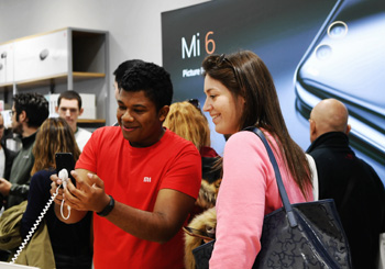 ??? 11月11日,在西班牙首都馬德里,“小米之家”專營(yíng)店的店員為顧客介紹產(chǎn)品。中國(guó)創(chuàng)新型科技企業(yè)小米授權(quán)經(jīng)銷的兩家實(shí)體專營(yíng)店“小米之家”11日亮相馬德里,受到當(dāng)?shù)亍懊追邸弊放?。記?郭求達(dá) 攝 |