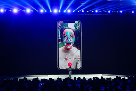 ??? 12月3日,蘋果全球副總裁、大中華區(qū)董事總經(jīng)理葛越演示一款可以實現(xiàn)變臉的軟件,以此為例介紹蘋果公司在增強現(xiàn)實領(lǐng)域的技術(shù)。當(dāng)日,第四屆世界互聯(lián)網(wǎng)大會世界互聯(lián)網(wǎng)領(lǐng)先科技成果發(fā)布活動在浙江烏鎮(zhèn)舉行。記者 鄭煥松 攝