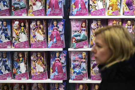 ??? 12月3日,在俄羅斯莫斯科,顧客選購迪士尼玩具。當(dāng)日,首家美國迪士尼玩具專賣店落戶莫斯科市盧比揚卡中央兒童商店。新華社/衛(wèi)星社