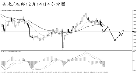 ▲美元兌瑞郎小幅反彈后再度發(fā)起下調(diào)。經(jīng)過短線的下調(diào),MACD重新進(jìn)入到空頭動(dòng)能充盈的階段。短線下調(diào)力度迅猛但幅度有限,可謹(jǐn)慎看空,但需隨時(shí)謹(jǐn)防匯價(jià)重新發(fā)起上攻風(fēng)險(xiǎn)。