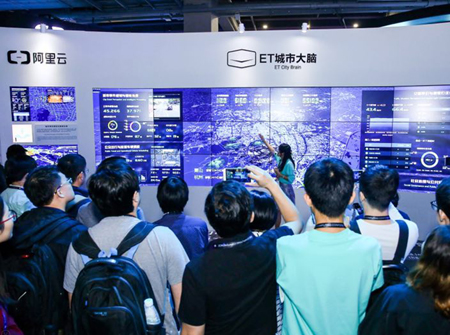 2017年10月,杭州城市大腦1.0正式上線。圖為杭州·云棲大會上阿里云ET城市大腦展臺。(資料照片)