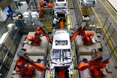 長安福特汽車廠機器人在工作