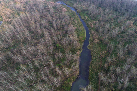 圖為2017年11月27日,位于湖南沅江市的南洞庭湖自然保護區(qū)核心區(qū)內(nèi)一大片等待清理的歐美黑楊林。記者 李尕/攝