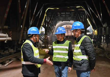 1月3日,中鐵十八局集團(tuán)公司的工程技術(shù)管理人員在墨臨高速公路文新一號(hào)隧道商議施工方案。