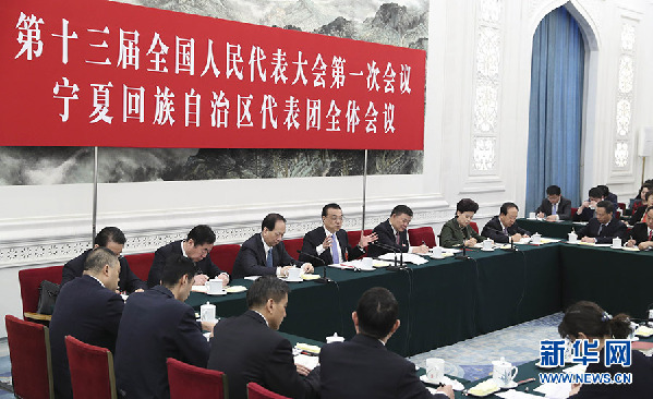 3月10日,中共中央政治局常委、國務(wù)院總理李克強(qiáng)參加十三屆全國人大一次會(huì)議寧夏代表團(tuán)的審議。 新華社記者 丁林 攝