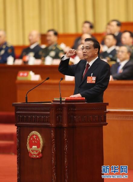 3月18日,十三屆全國(guó)人大一次會(huì)議在北京人民大會(huì)堂舉行第六次全體會(huì)議。大會(huì)經(jīng)投票表決,決定李克強(qiáng)為中華人民共和國(guó)國(guó)務(wù)院總理。這是李克強(qiáng)進(jìn)行憲法宣誓。新華社記者 姚大偉 攝