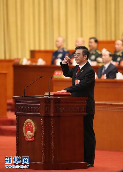3月18日,十三屆全國(guó)人大一次會(huì)議在北京人民大會(huì)堂舉行第六次全體會(huì)議。張軍當(dāng)選為最高人民檢察院檢察長(zhǎng)。這是張軍進(jìn)行憲法宣誓。新華社記者 姚大偉 攝