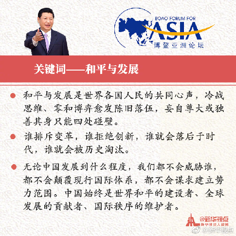 新華網(wǎng)北京4月10日電 4月10日上午,中國(guó)國(guó)家主席習(xí)近平應(yīng)邀出席博鰲亞洲論壇2018年年會(huì)開(kāi)幕式并發(fā)表重要主旨演講。來(lái)看看這些金句! ????(據(jù)新華社“新華視點(diǎn)”微博)